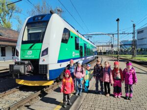 Naši výpravu jsme započali na nádraží Ostrava střed, odkud nás RegioPanter odvezl až do stanice Studénka. Vydali jsme se po modré turistické značce podél kolejí, odstavených nákladních vagónů, přes staré železniční mosty až k Ptačí pozorovatelně. V přístřešku ale hodně foukalo, usadili a posilnili jsme se tedy na břehu rybníka Kotvice, kde nás sluníčko zahřívalo svými paprsky. Místní ptactvo jsme pozorovali jen z dálky, ale pečlivě jsme si své svačinky střežili, protože někteří odvážní opeřenci se rozhodli prozkoumat přímo nad našimi hlavami, jaké dobroty naše batůžky skrývají. Na Naučné stezce Kotvice a kolem břehu rybníka Kačák jsme pozorovali nejen místní faunu, ale i floru. U Oderské lávky se Slůňátka zabavila hrami, trháním kytiček nebo zkrášlením vedoucí pomocí svízele. Krásný slunečný den jsme si všichni užili a s úsměvem se vrátili zpět domů.