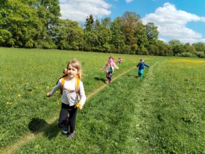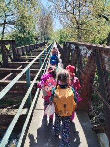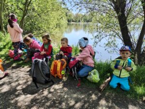 Naši výpravu jsme započali na nádraží Ostrava střed, odkud nás RegioPanter odvezl až do stanice Studénka. Vydali jsme se po modré turistické značce podél kolejí, odstavených nákladních vagónů, přes staré železniční mosty až k Ptačí pozorovatelně. V přístřešku ale hodně foukalo, usadili a posilnili jsme se tedy na břehu rybníka Kotvice, kde nás sluníčko zahřívalo svými paprsky. Místní ptactvo jsme pozorovali jen z dálky, ale pečlivě jsme si své svačinky střežili, protože někteří odvážní opeřenci se rozhodli prozkoumat přímo nad našimi hlavami, jaké dobroty naše batůžky skrývají. Na Naučné stezce Kotvice a kolem břehu rybníka Kačák jsme pozorovali nejen místní faunu, ale i floru. U Oderské lávky se Slůňátka zabavila hrami, trháním kytiček nebo zkrášlením vedoucí pomocí svízele. Krásný slunečný den jsme si všichni užili a s úsměvem se vrátili zpět domů.