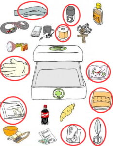 V prvním úkolu se podíváme, co vše by mělo patřit do lékárničky. Vyberte tedy správné předměty, které do lékárničky patří. Poté se zkuste podívat, co vše obsahuje vaše lékárnička doma a zda je v ní všechno.