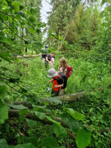 Po velmi deštivé noci jsme se sešli na Svinově a vyrazili na vláčkový výlet. S jedním přestupem a navíc výlukou jsme dojeli do Brantic. Procházeli jsme se vesnicí a kolem řeky v místech, kde o povodni bylo vody většině doslova až nad hlavu. Pozorovali jsme stopy velké vody. Poté už jsme polní cestou kolem velkých kaluží a bahnišť došli k lesu. Lesní cesta zatarasená popadanými stromy byla hotovou džunglí, pro některé až moc dobrodružnou. Pořádně jsme si vyhráli v potůčku. Po cestě mokrou loukou jsem byli řádně promočení, naštěstí bylo teplo. Na chatě nás čekalo překvapení v podobě zralých třešní, kterých bylo tak akorát, že i na cestě domů autobusem a vlakem zůstali všichni veselí.