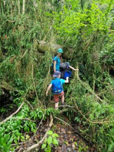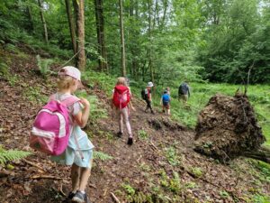 Po velmi deštivé noci jsme se sešli na Svinově a vyrazili na vláčkový výlet. S jedním přestupem a navíc výlukou jsme dojeli do Brantic. Procházeli jsme se vesnicí a kolem řeky v místech, kde o povodni bylo vody většině doslova až nad hlavu. Pozorovali jsme stopy velké vody. Poté už jsme polní cestou kolem velkých kaluží a bahnišť došli k lesu. Lesní cesta zatarasená popadanými stromy byla hotovou džunglí, pro některé až moc dobrodružnou. Pořádně jsme si vyhráli v potůčku. Po cestě mokrou loukou jsem byli řádně promočení, naštěstí bylo teplo. Na chatě nás čekalo překvapení v podobě zralých třešní, kterých bylo tak akorát, že i na cestě domů autobusem a vlakem zůstali všichni veselí.