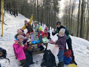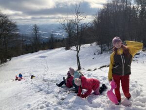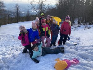 Kopretinky: Šly sme na hory a byl šílený kopec. Klouzalo to tam. Udělaly jsme sjezdovky. Šly jsme směrem na Radhošť, lopatovaly jsme krásně. Všichni jsme měli mokré oblečení. Bylo tam strašně hodně sněhu.